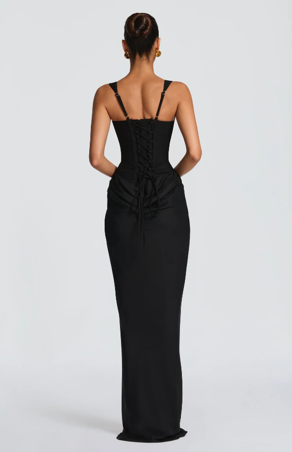 Sukienka Cornelia Maxi zachwyca wyrafinowanym krojem i eleganckim charakterem. Projektanci połączyli usztywniony gorset z krepy z obniżoną talią oraz lekką, zwiewną spódnicą z lyocellu, tworząc wyjątkowo kobiecą sylwetkę.
