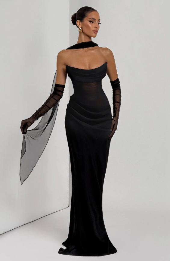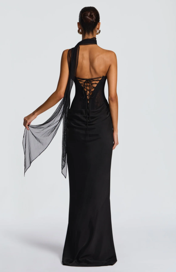 Sukienka Liora Maxi Dress w kolorze czarnym prezentuje nowoczesne podejście do klasycznej elegancji. Nierozciągliwy materiał cupro pięknie modeluje sylwetkę dzięki dopasowanej spódnicy i panelowi biustu. Przezroczysty panel z siateczki w talii dodaje lekkości i podkreśla kobiecą linię figury.